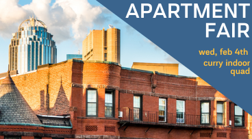 Thinking about moving off campus? Don’t miss our annual Apartment Fair This is your chance to talk with a variety of realtors and property managers about their properties located close to the campus, and get expert advice from student Community Ambassadors. Door prizes, property information and snacks! More Info Here!